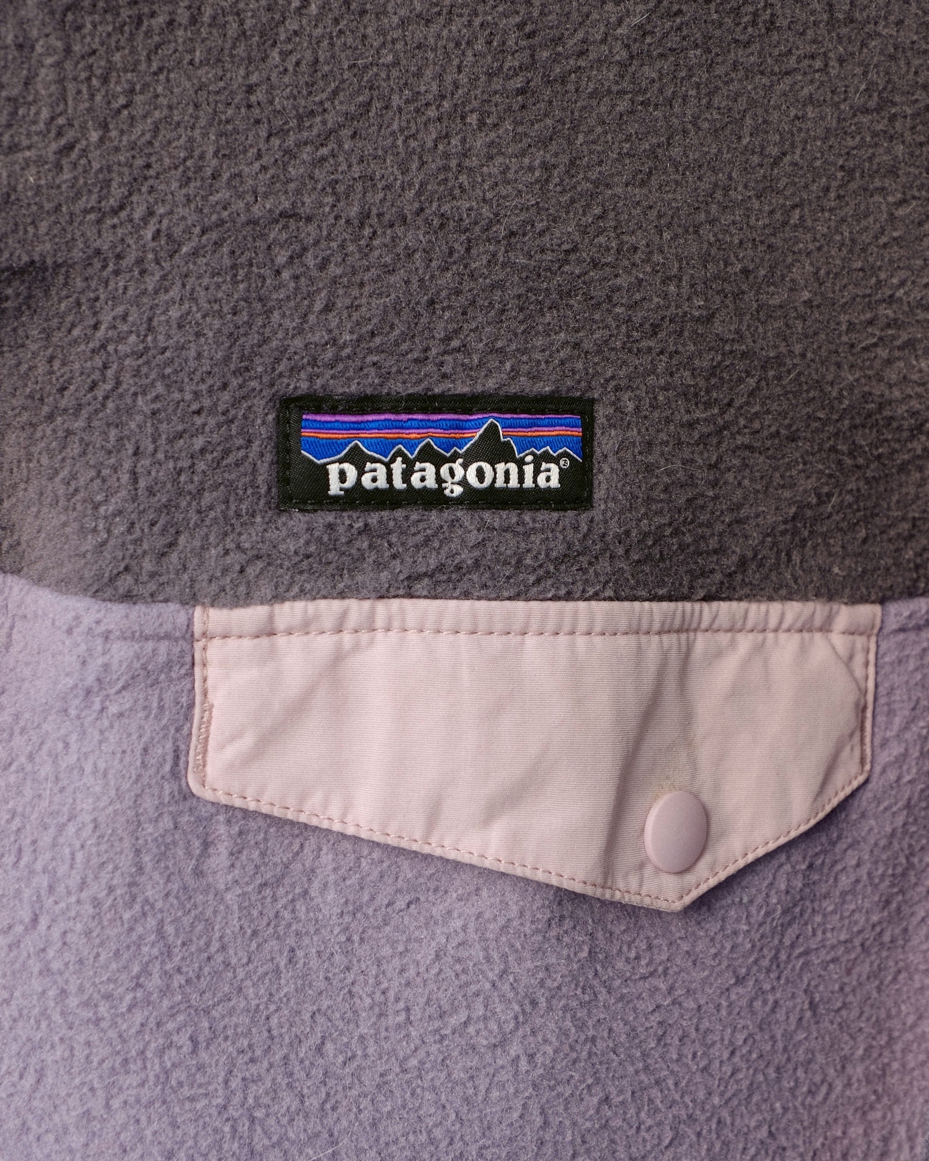 柔らかな色合いのラベンダーとグレーカラーが特徴のフリース。