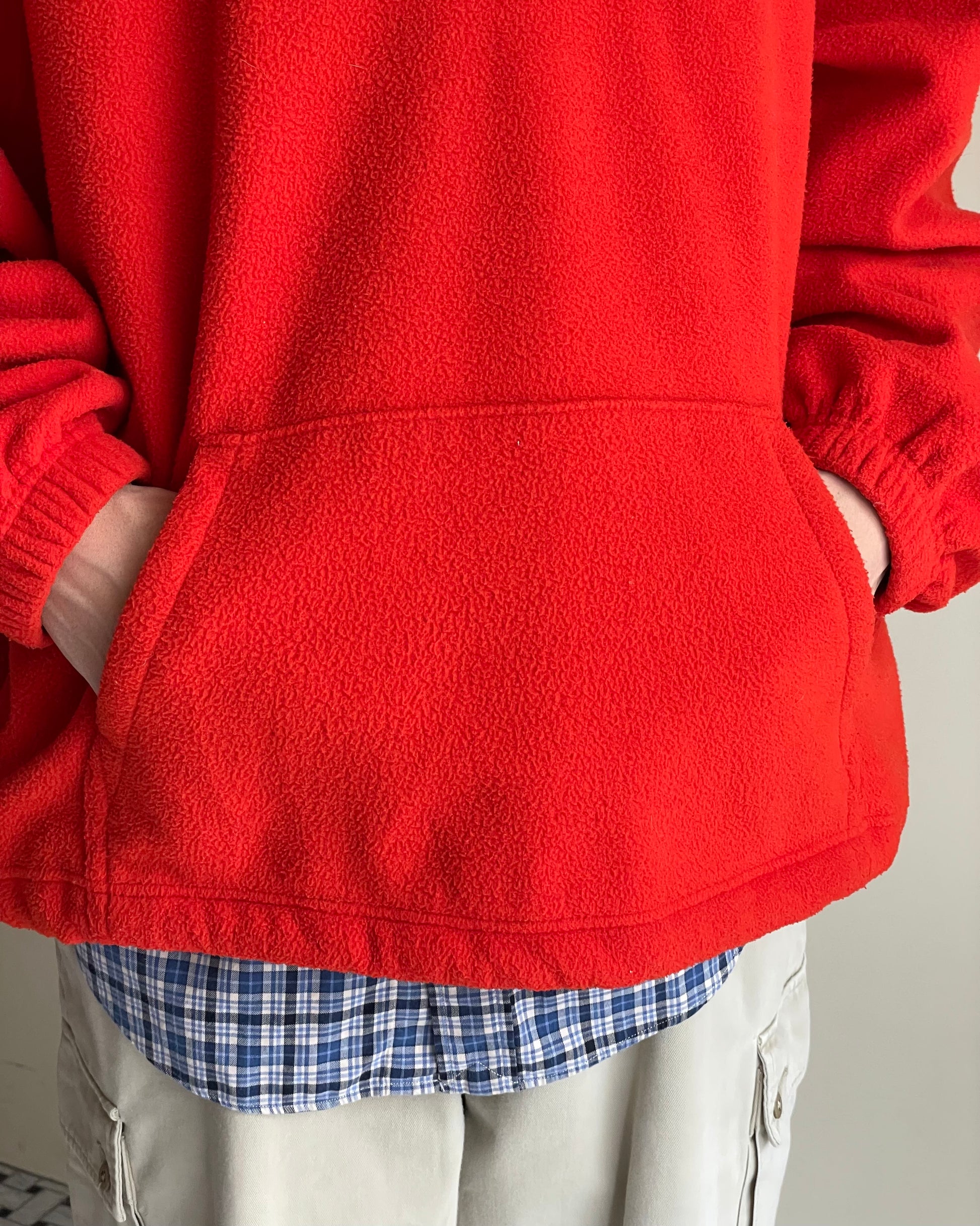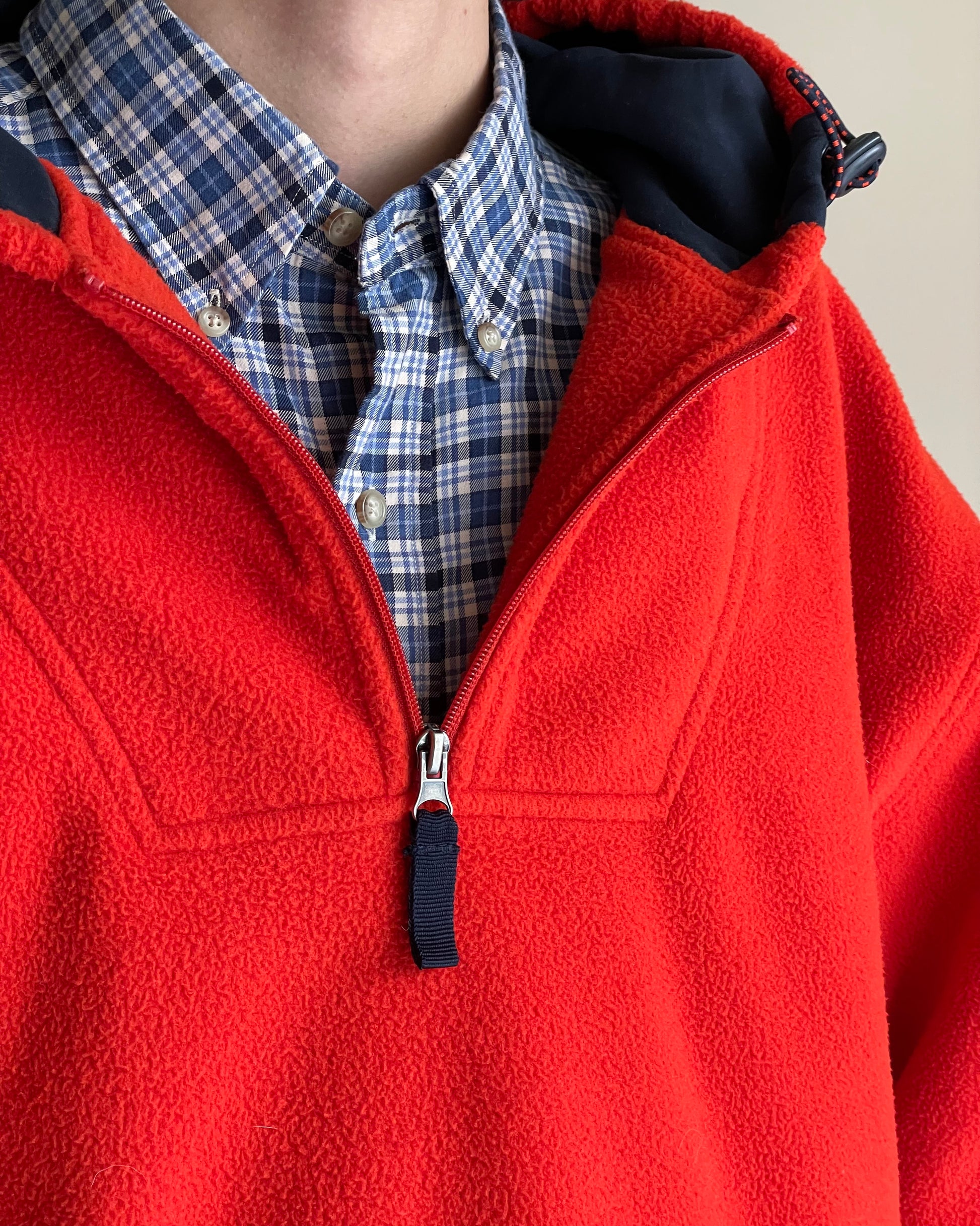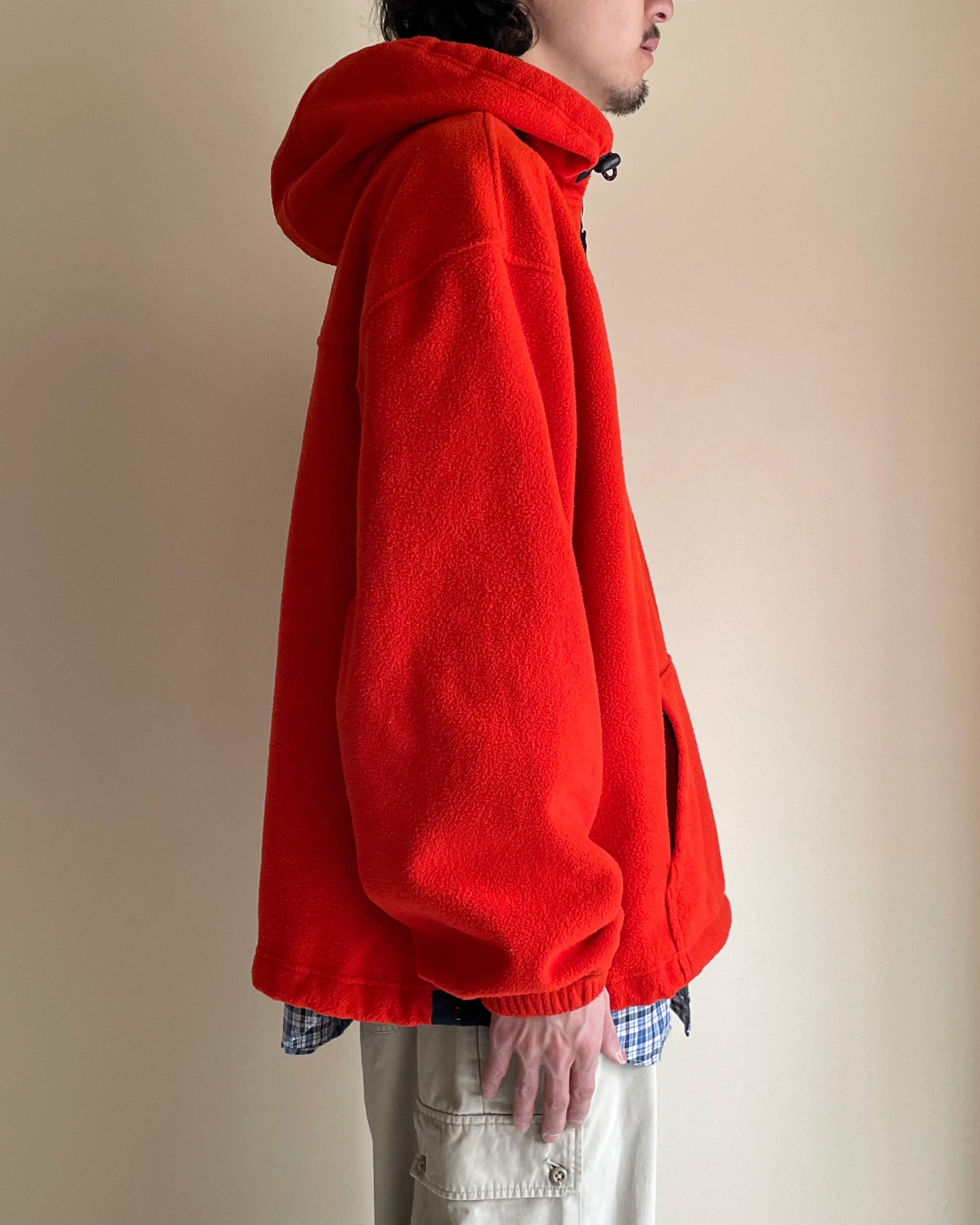こういう服がたまらなく好きです。オレンジでフーディーでアノラックでフリースでロゴの90年代感。