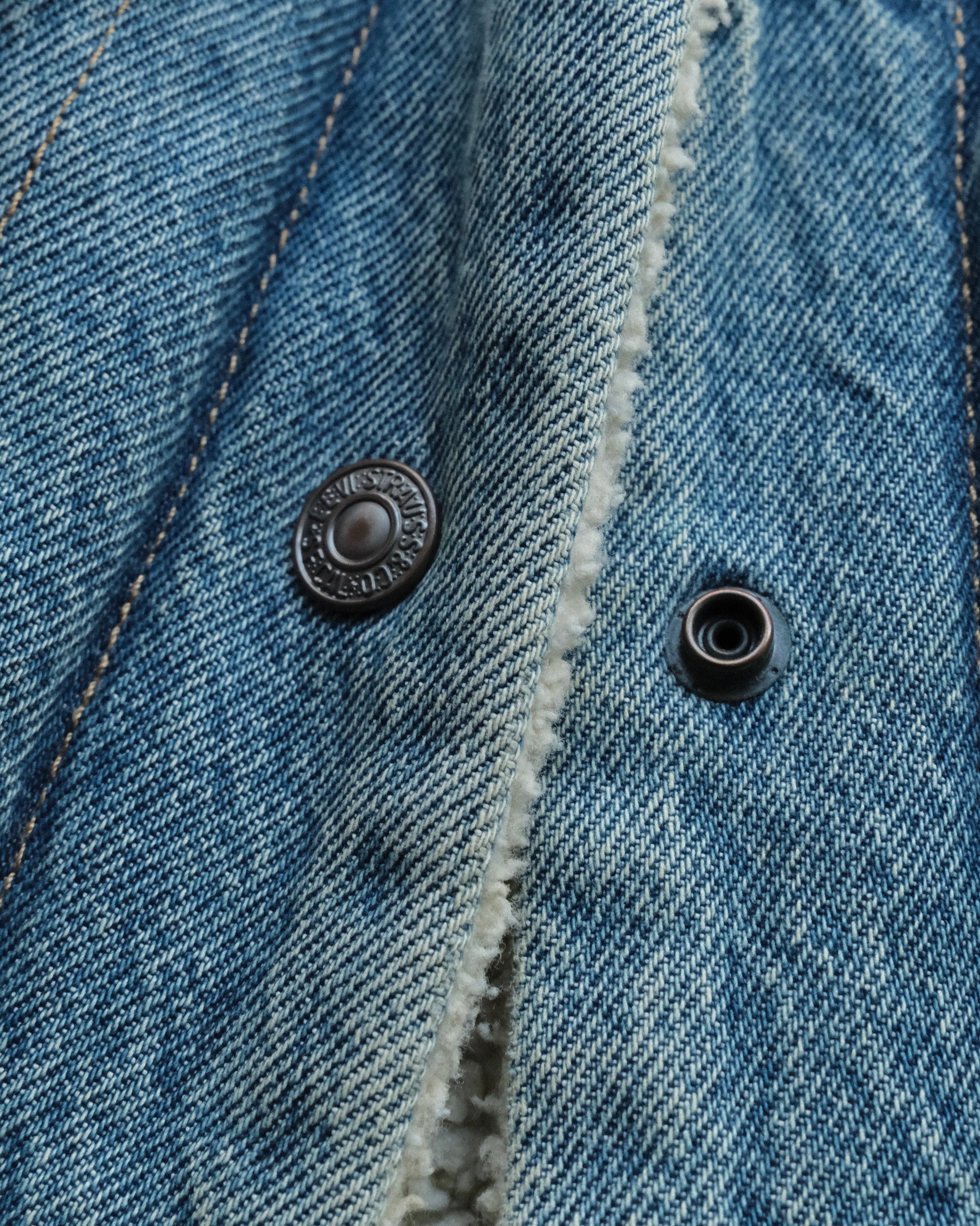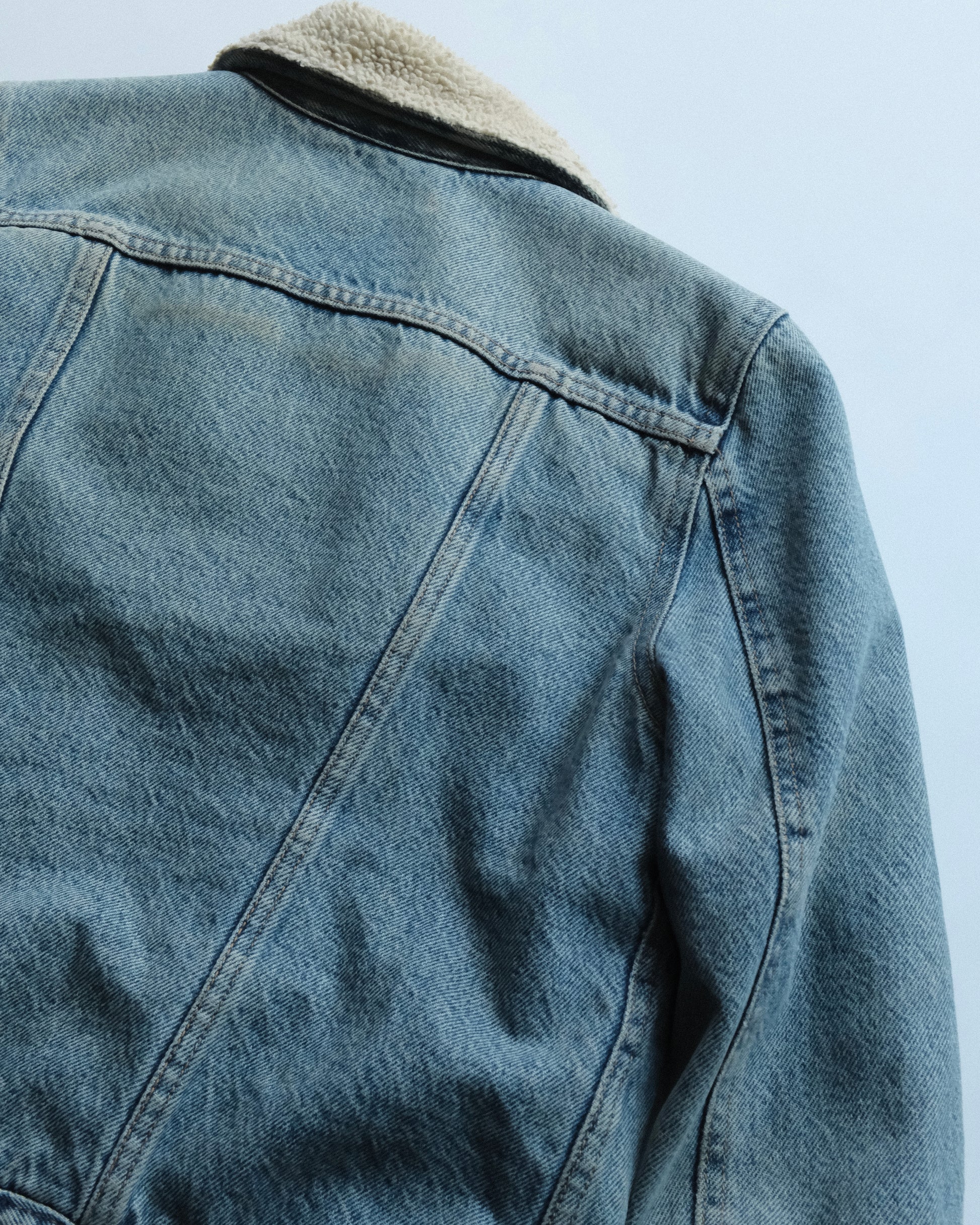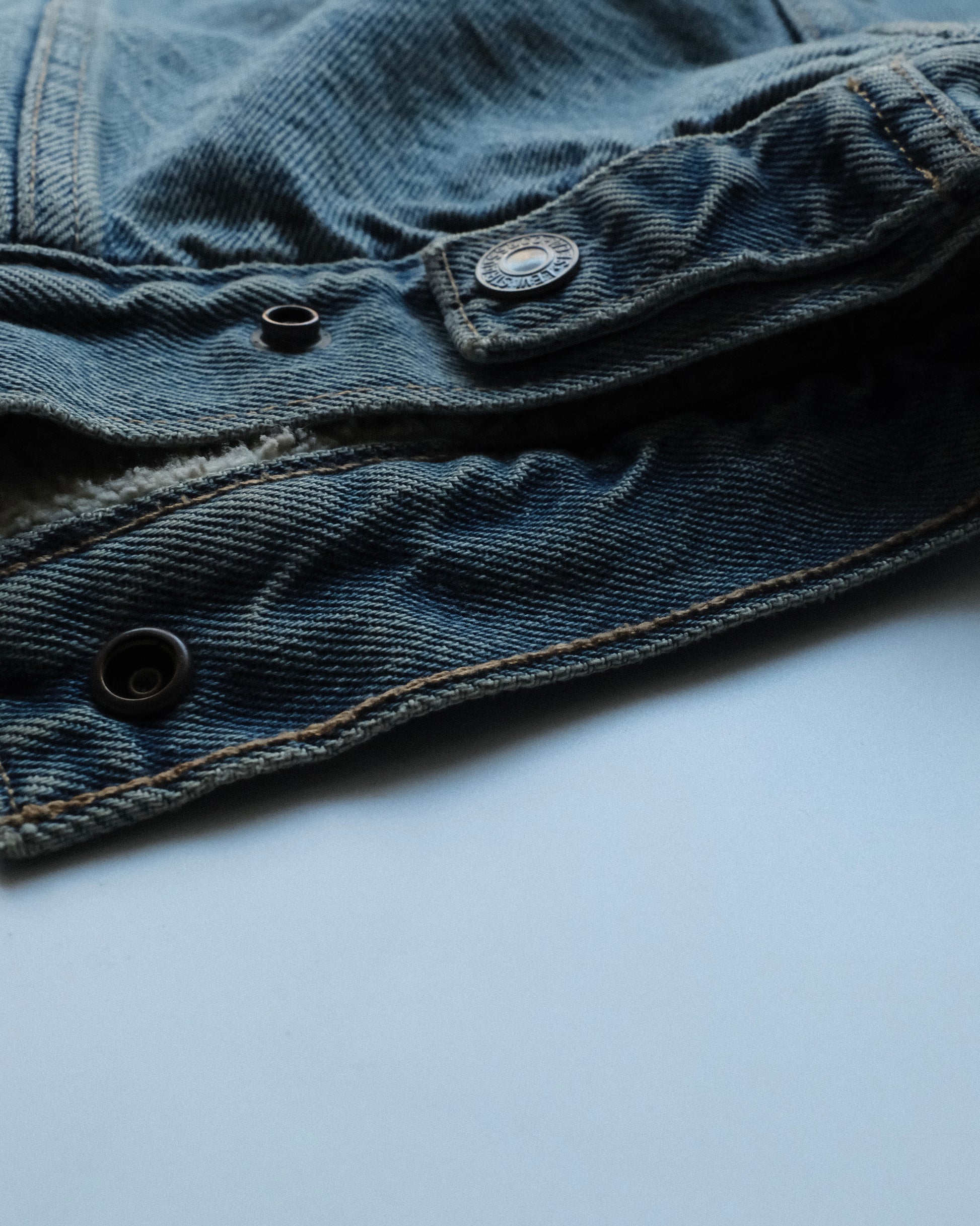 程よくフェードしたデニムに柔らかなボアのライニングを組み合わせた一着。