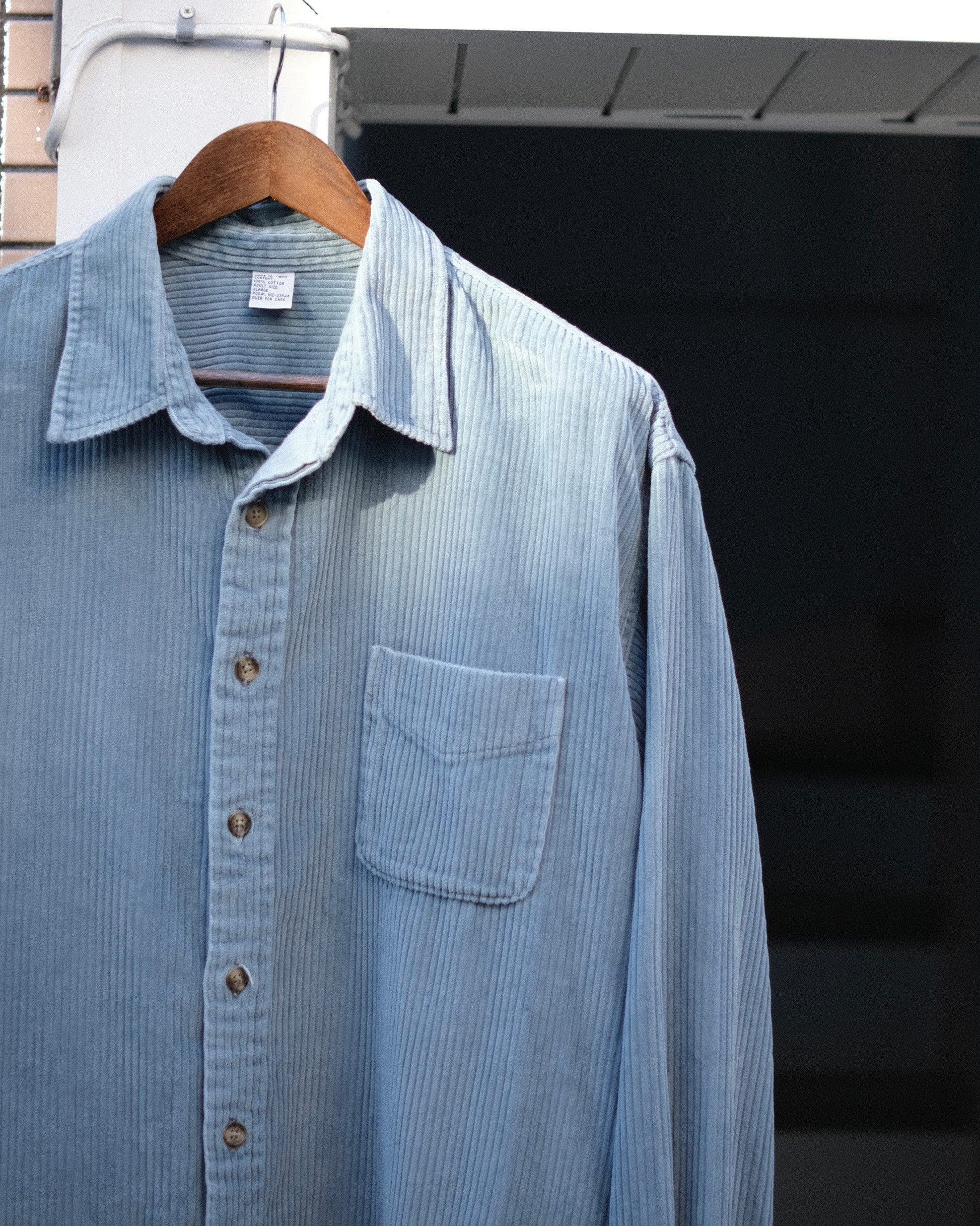 太畝のコーデュロイを使用したレギュラーカラーシャツ。